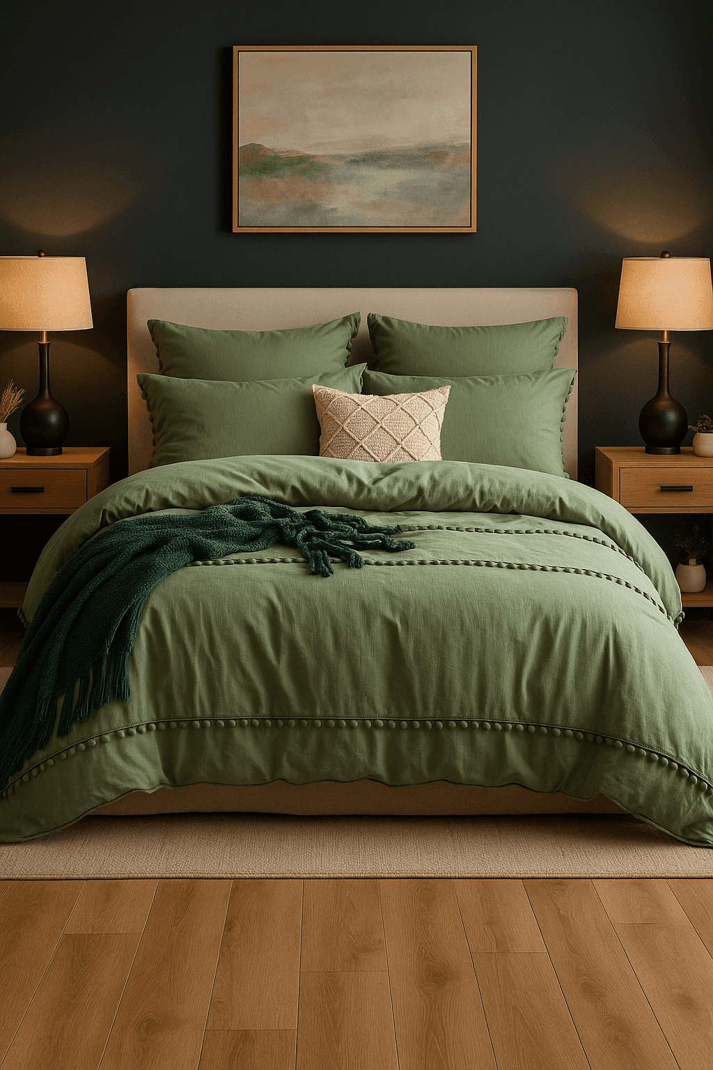 Pościel 3 częściowa z pomponami pastelowa zieleń 200x220