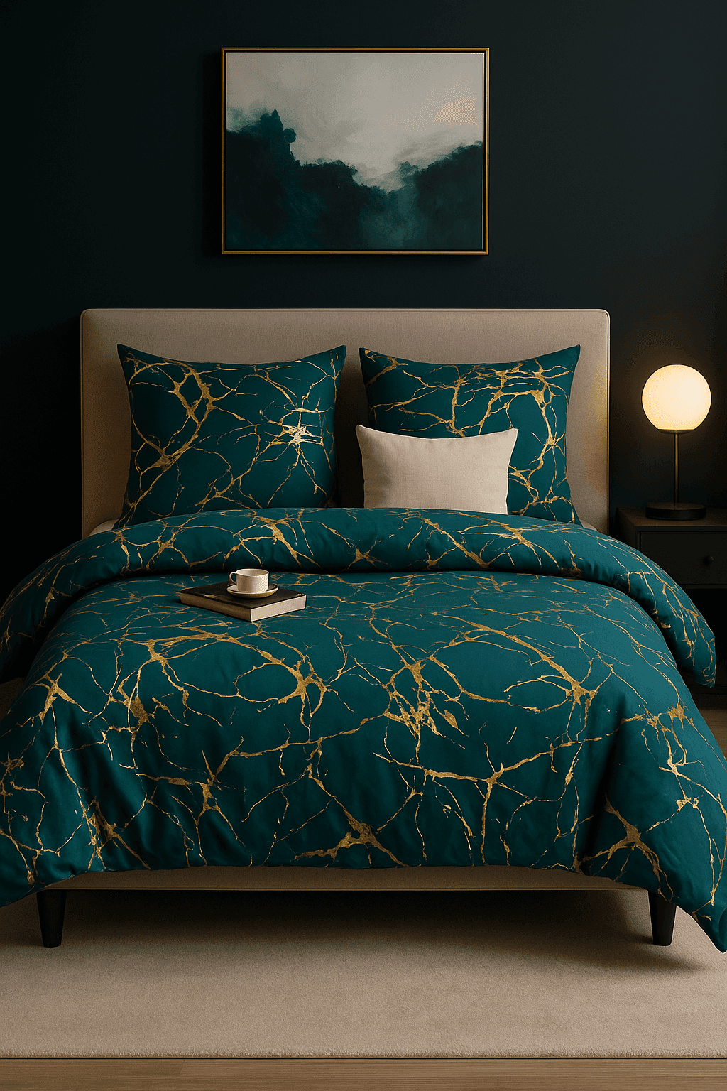 Pościel 3 częściowa zielona ze złotym wzorem