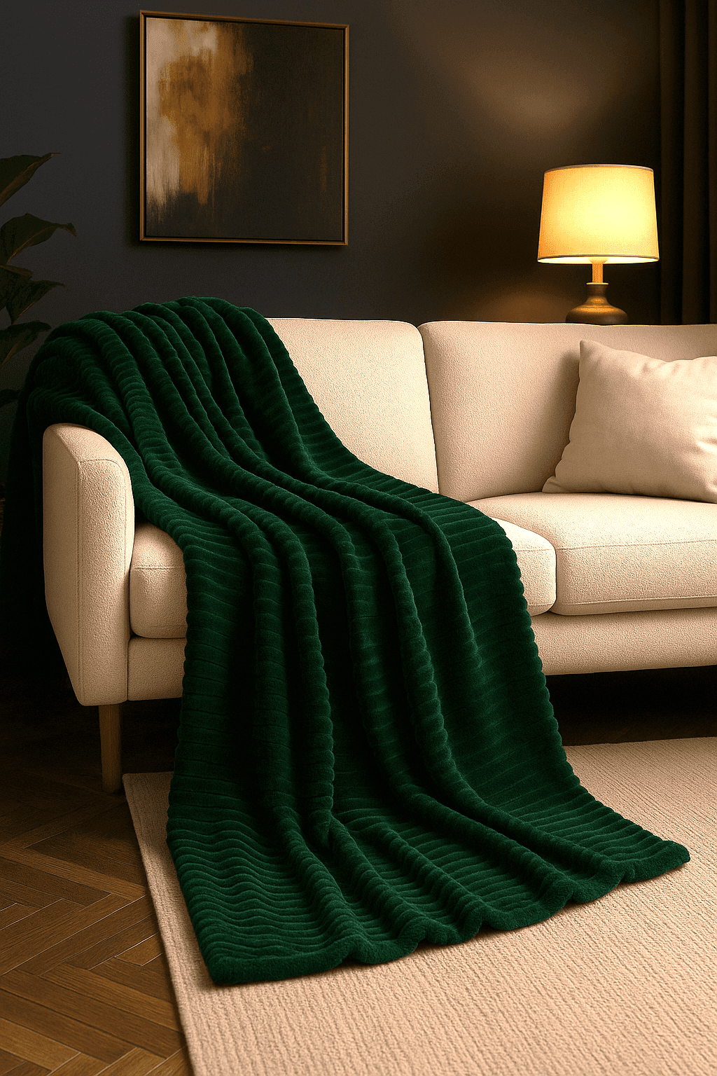 Koc pluszowy w grube prążki ciemnozielony 160×200